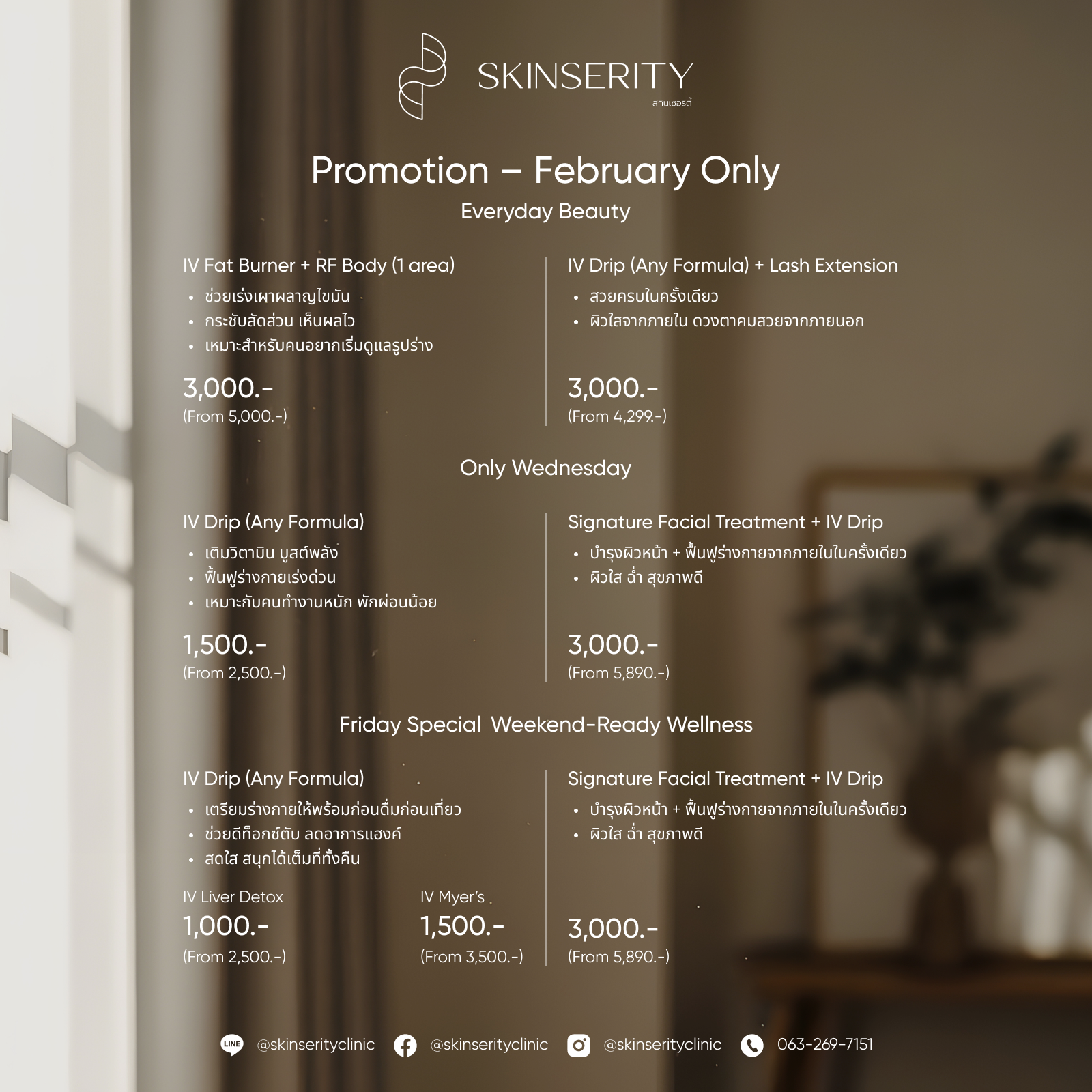 • IV Drip : IV Liver Detox 1,000 (From 2,500.-) OR IV Myer's 1,500 (From 3,500.-)